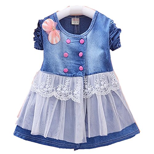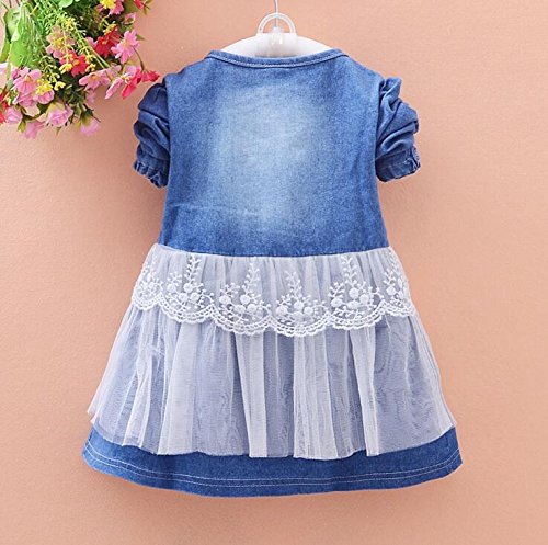 vivisclassic 子供ドレス 女の子 ベビーワンピース フォーマルドレス ワンピース デニム キッズドレス 長袖 膝上丈 かわいい おしゃれ通園 通学 春服 70cm~100cm (100cm)