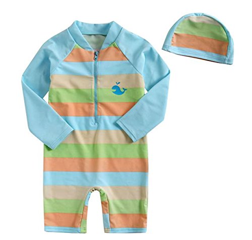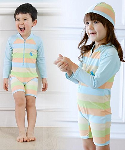 - ラッシュガードタイプの水着です。水着とお揃いの帽子のセットです。パステルカラーが可愛い、胸にクジラのプリントがされたデザインです。男の子はもちろん、女の子にもおススメです♪