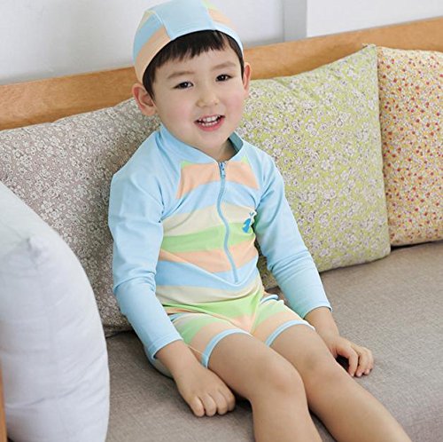 水着 ラッシュガード 子供 ベビー 帽子 付 2点 セット (ブルー, 110cm(4T))