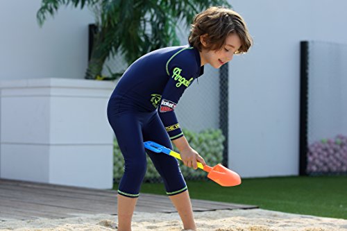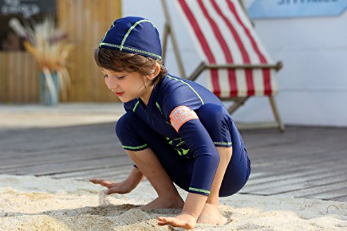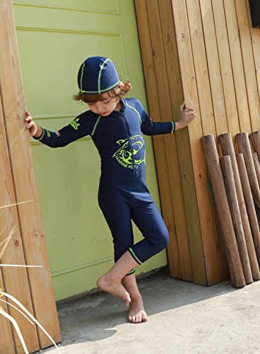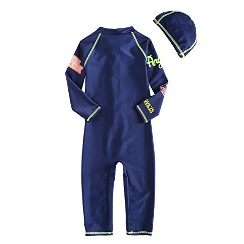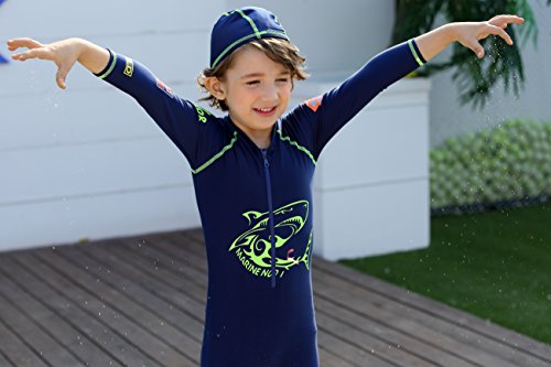 正規品 子供水着 男児水着 キッズ水着 帽子付き水着 男の子水着 長袖 UPF50+素材使用 (5T(110))