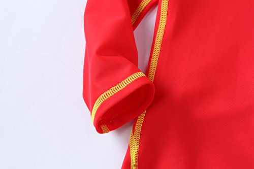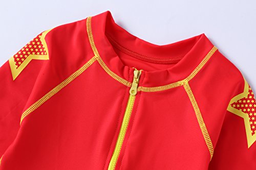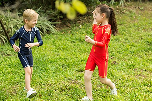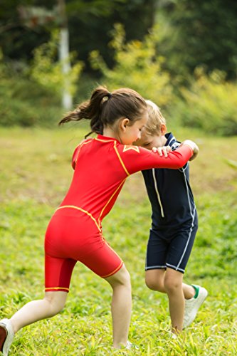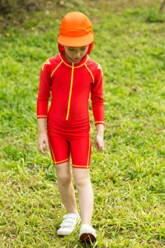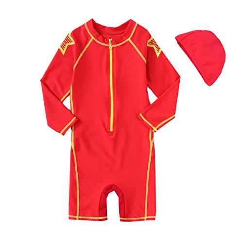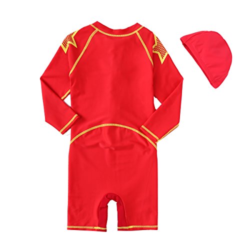 VIVO-BINIYA 正規品 子供水着 女児水着 男児水着 長袖 キッズ水着 帽子付き水着 スイムキャップ UPF50+素材使用 (5T(110), レッド)
