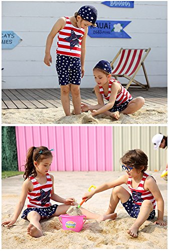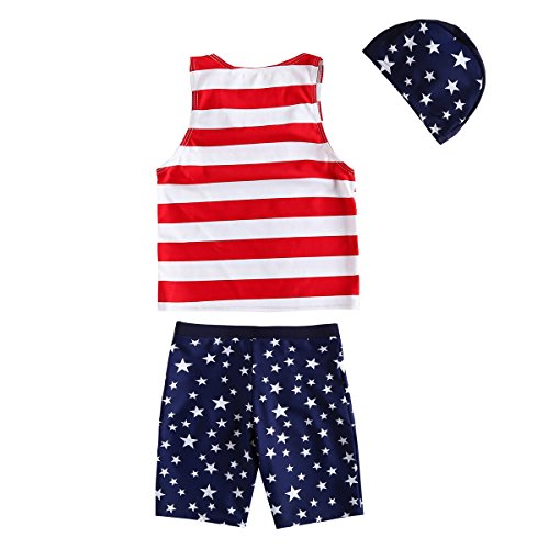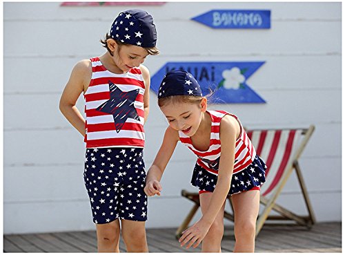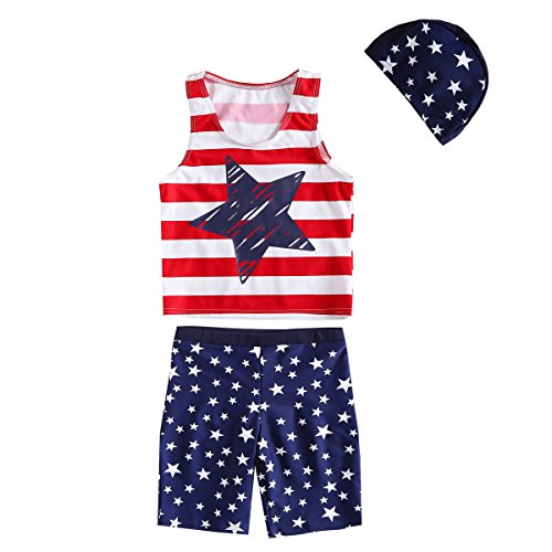 VIVO-BINIYA 正規品 子供水着 男児水着 女児水着 セパレート3点セット キッズ水着 帽子付き水着 UPF50+素材使用 (11T(130-140), 男児)