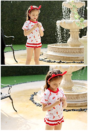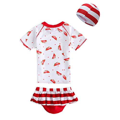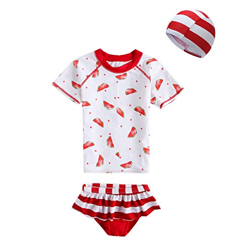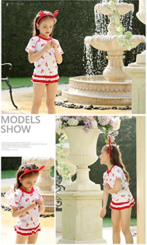 VIVO-BINIYA 正規品 最新 子供水着 女児水着 3点セット セパレート スクール 水泳 日焼け防止 海水浴 キッズ水着 女の子水着 スイムキャップ付 水着 UPF50+素材使用 (5T(100-110))