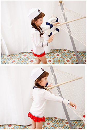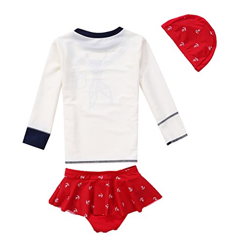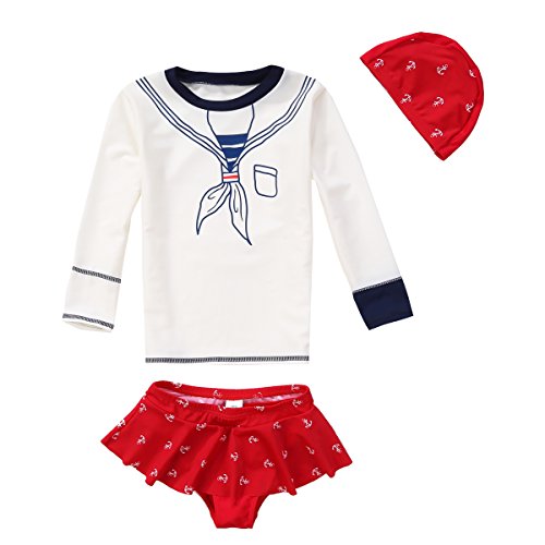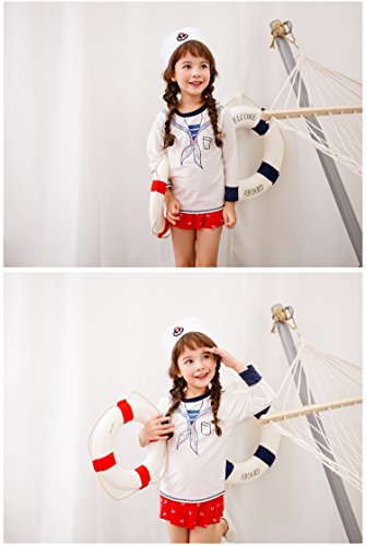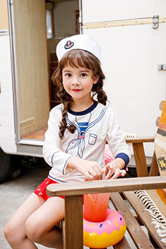 正規品 最新 子供水着 女児水着 長袖 セパレート3点セット キッズ水着 帽子付き水着 ラッシュガード スイムキャップ UPF50+素材使用 プール 海水浴 (7T(110-120))