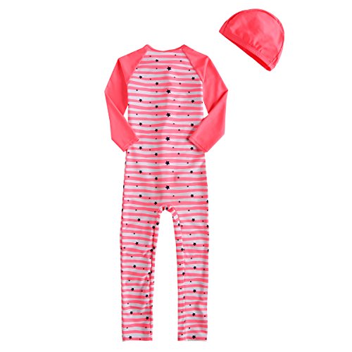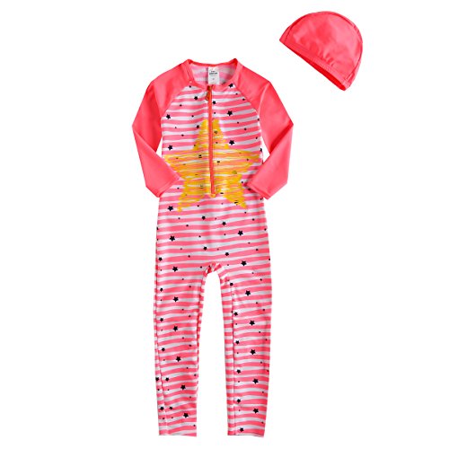 正規品 最新 女児水着 男児水着 二色 スイムキャップ付き ラッシュガード キッズ水着 長袖 UPF50+素材使用 紫外線防止 (9T(120-130), ローズピンク)
