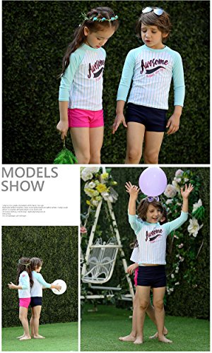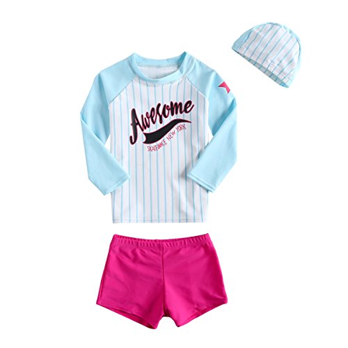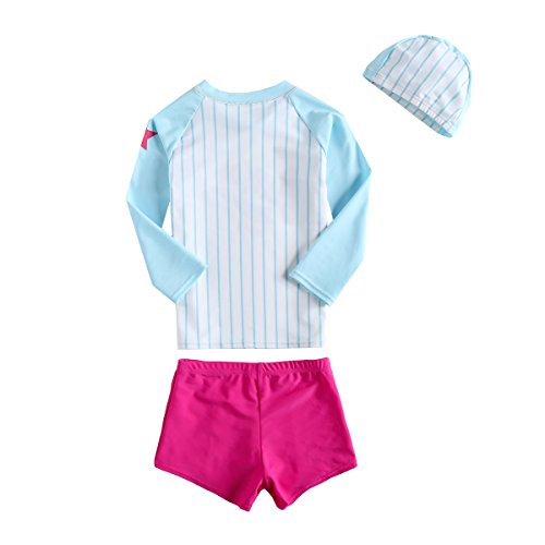 正規品 最新 子供水着 女児水着 男児水着 ピンク/ブラック 長袖 セパレート3点セット キッズ水着 帽子付き水着 ラッシュガード スイムキャップ UPF50+素材使用 (9T(120-130), 女児)