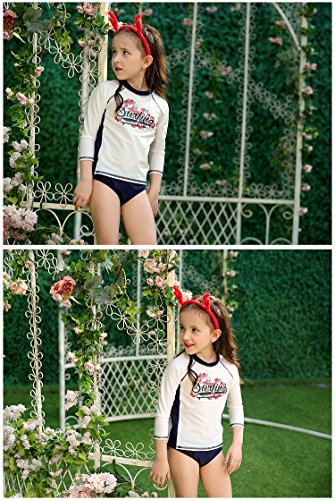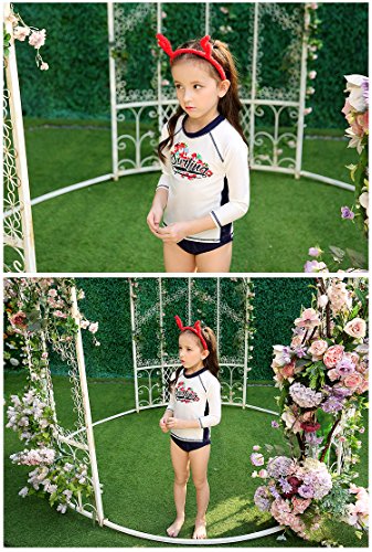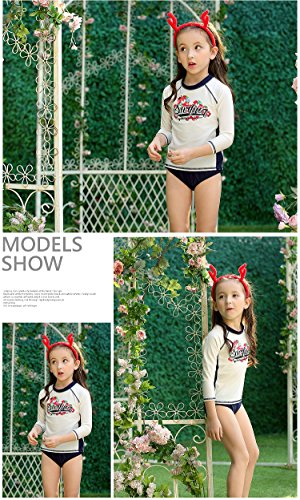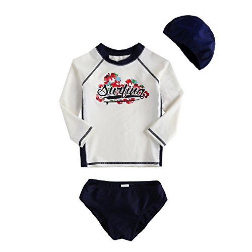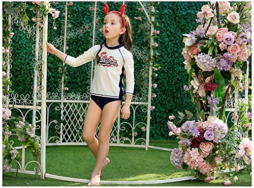 正規品 最新 子供水着 女児水着 長袖 セパレート3点セット キッズ水着 帽子付き水着 ラッシュガード スイムキャップ UPF50+素材使用 (9T(120-130))