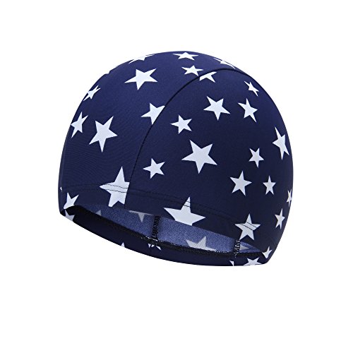 正規品 最新 スイムキャップ 男児 女児 スイム キッズ スクール水着 UVカットスイミング帽子 (星柄ネイビー)
