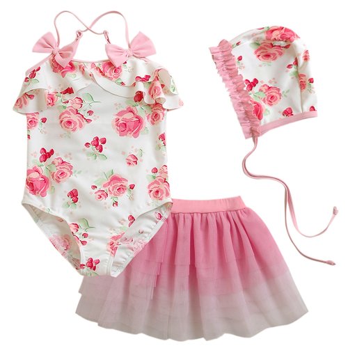 ワンピース、帽子、スカート3点セット○とってもキュートでスィートな水着が登場! 注意:手洗い・陰干しをオススメいたします。 濡れたまま放置しないで下さい。