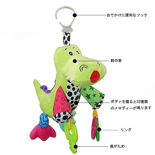 wingingkids ベビートイ 赤ちゃん用 ガラガラ ふわふわ 布おもちゃ ワニさん 歯固め 音楽おもちゃ フック付きおもちゃ ベビーカー用おもちゃ お出かけトイ ラトル 音鳴り 知育遊具 動物 出産お祝い プレゼント