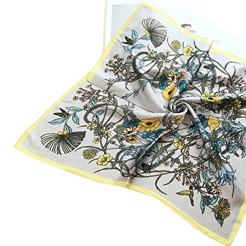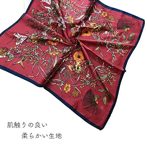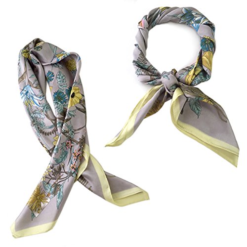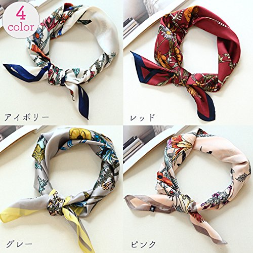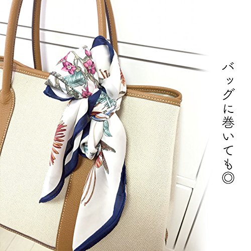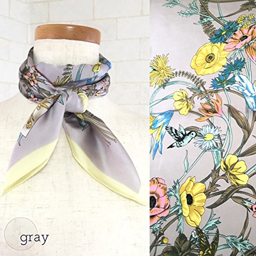 バッグにコーデのポイントに!おしゃれなスカーフ ボタニカル柄スカーフ 花柄 フラワー (グレー)