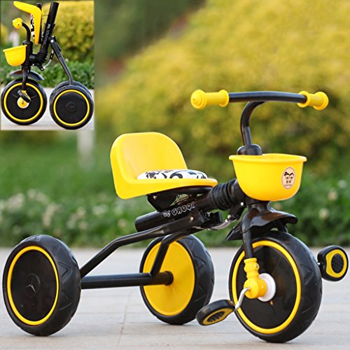 子供の三輪車折りたたみ自転車シンプルな屋内と屋外の2-4歳の黄色の自転車