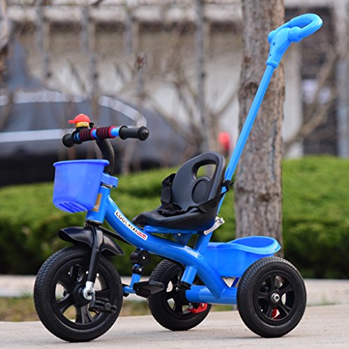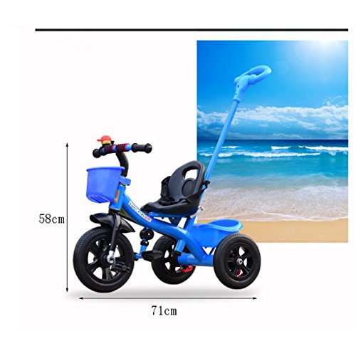 子供の自転車折りたたみ自転車2-6歳、ベビーベビーカー、青、ハンドプッシュロッド付き ( Size : Inflatable wheel With pole )
