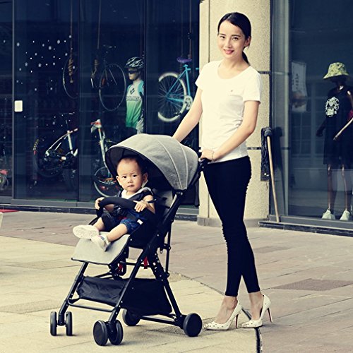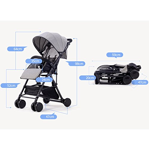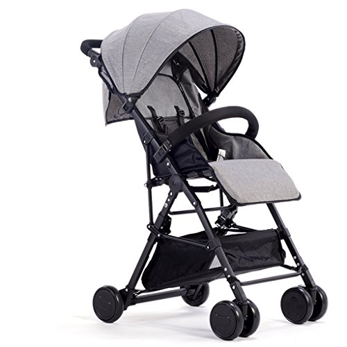 ベビーベビーカー、軽量折りたたみ四輪車、座って、横たわる、高炭素鋼ボディ、スーパーショックアブソーバ ( Color : Gray )
