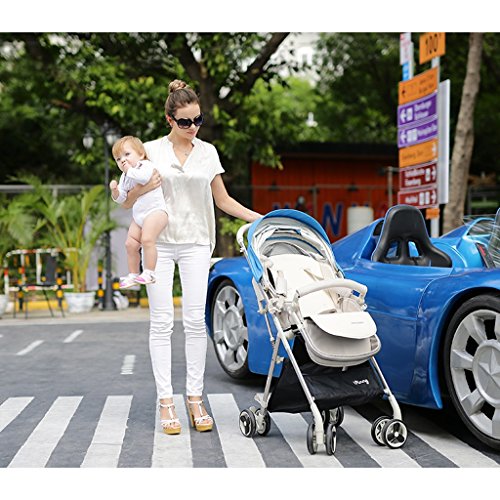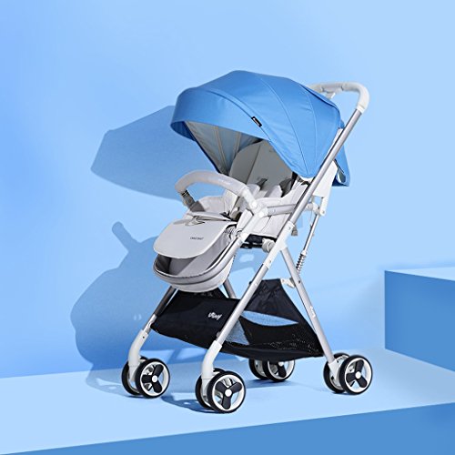 ベビーカー、折り畳み四輪車、座席、リクライニング、アルミボディ、スーパーショックアブソーバ ( Color : Blue )