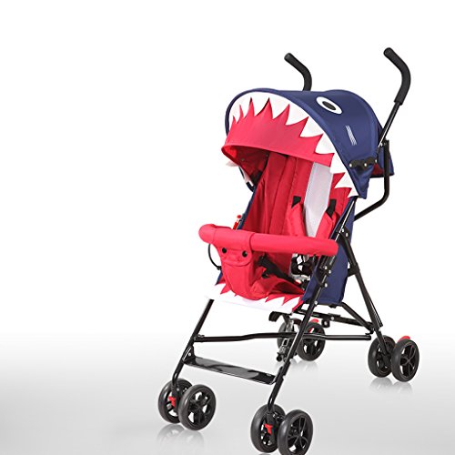 ベビーカー、折り畳み四輪車、座席、リクライニング、高炭素鋼ボディ、スーパーショックアブソーバ ( Color : Blue )