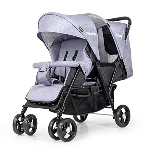ツインベビーベビーカー、折り畳み四輪車、高炭素鋼ボディ、スーパーショックアブソーバ ( Color : Grey )
