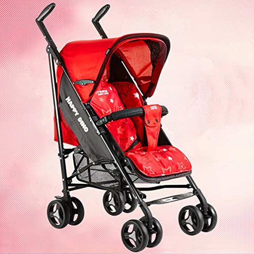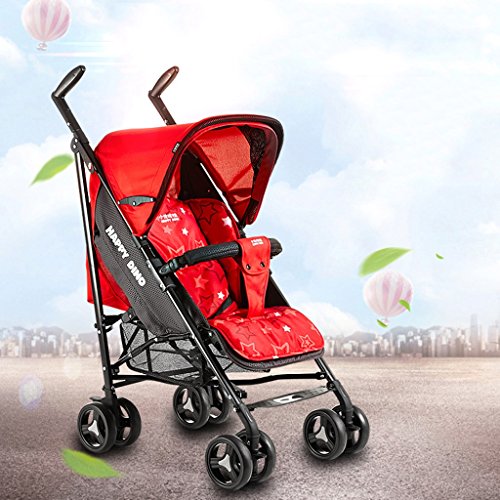 ベビーベビーカー、折り畳み式四輪車、軽量リクライニング傘、高炭素鋼ボディ、スーパーショックアブソーバ ( Color : Red )
