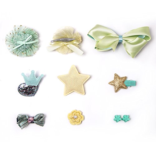 Ximeng 赤ちゃん少女の小さなブティックリボンのヘアクリップ、赤ちゃんの女の子のための髪の毛、十代のためのヘアピン、10種類のスタイルのセット (緑)
