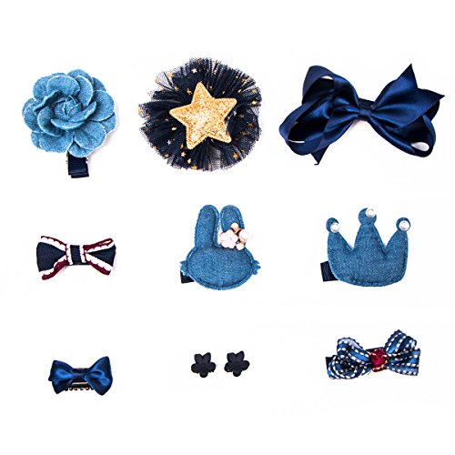 Ximeng 赤ちゃん少女の小さなブティックリボンのヘアクリップ、赤ちゃんの女の子のための髪の毛、十代のためのヘアピン、10種類のスタイルのセット (デニム)