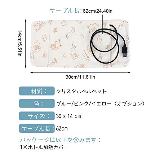 - 【商品仕様】材質:クリスタルベルベット。色:ブルー/ピンク/イエロー(オプション)。サイズ:30 x 14 cm 。ケーブル長:62cm 。パッケージは以下を含みます:1×ボトル加熱カバー。
