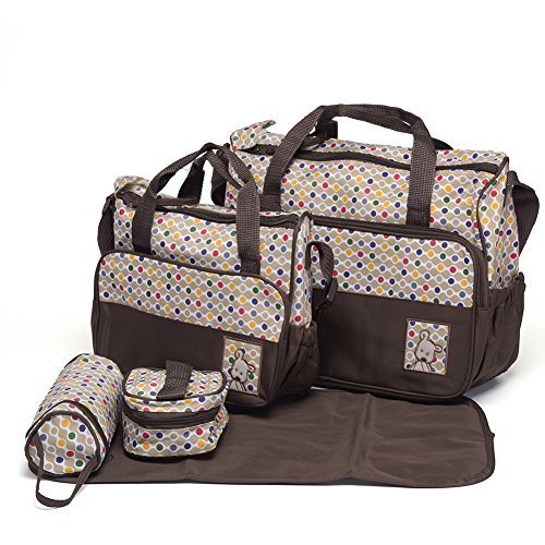 Great 5 pieces Fashion diaper bag set for stylish Mom.;Can be used as shoulder bag,messenger bag and handbag;can be hang on prams.;Multi-function Internal Pockets Are Easy To Carring Everthing.;Baby Travel Bag,Handbag,Shoulder Bags,Tote Bag,Messenger Bags.;5-in-1 Multi-function mummy bag tote set includes: a big bag, a small bag, an insulation feeding bottle holder, a diaper changing pad and a small food bag.