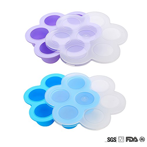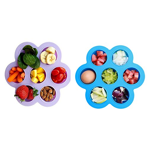 youghenyベビー食器 ランチプレート 離乳食小分け保存 滑り止め、水洗い 蓋付け 耐熱 耐冷 小分け容器 七つ穴 2点セット 防漏 幼稚園 食器 高品質 無味無臭 FDA&BPA認証