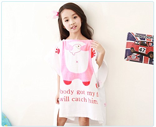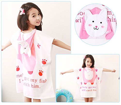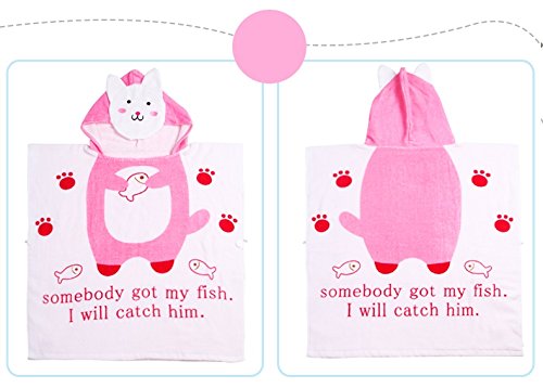 yukinko(ゆきんこ) キッズ 子供 アニマル フード付き バスタオル ビーチタオル バスローブ 海水浴 プール 入浴 (ピンク)