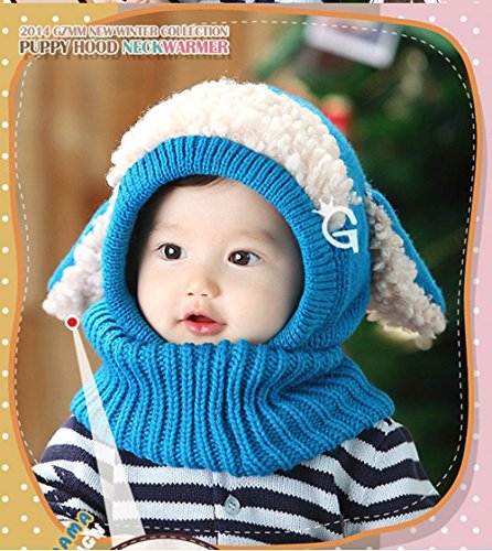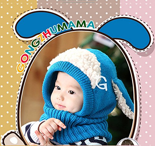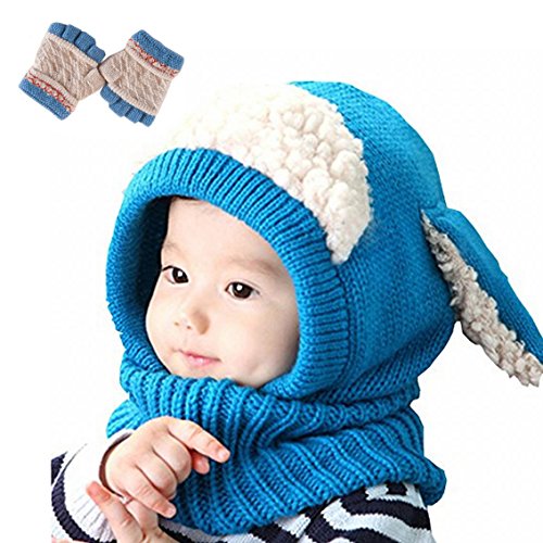 子供 用 ニット帽子 うさぎちゃん風 ニット帽 ベビー キッズ 赤ちゃん かわいい &色ランダム防寒グローブ あたたかい手袋セットとして (ブルー)