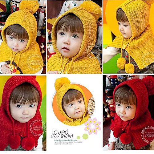 【Yusongirl】子供 用 ニット帽子と色ランダム防寒グローブ2点 セット品 うさぎちゃん風 ニット帽 ベビー キッズ 赤ちゃん かわいい &色ランダム防寒グローブ あたたかい手袋セット (レッド)