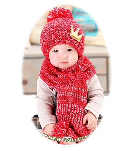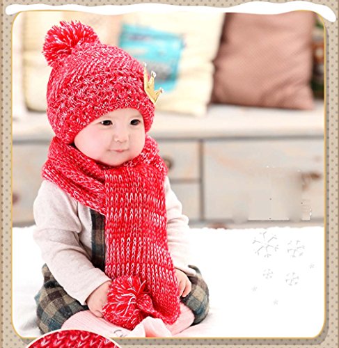 【Yusongirl】子供 用 ニット帽子 うさぎちゃん風 ニット帽 ベビー キッズ 赤ちゃん かわいい &色ランダム防寒グローブ あたたかい手袋セットとして (クラウン柄レッド)