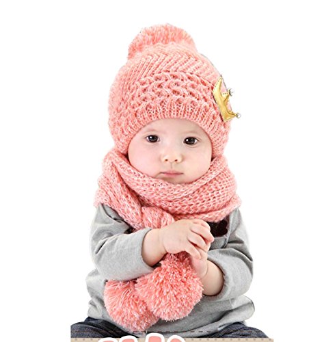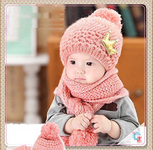 【Yusongirl】子供 用 ニット帽子 うさぎちゃん風 ニット帽 ベビー キッズ 赤ちゃん かわいい &色ランダム防寒グローブ あたたかい手袋セットとして (クラウン柄ピック)
