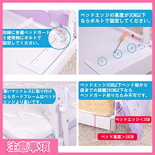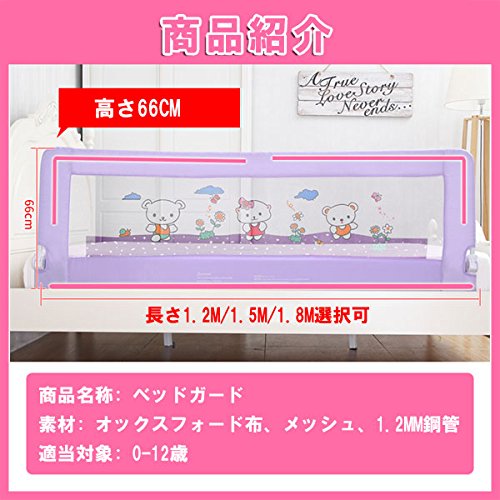 ベッドガード 布団のずり落ち防止 ベッドサイドガード サイドガード 赤ちゃん ベッド 転落防止 落下防止 介護用品 ベビー用品 (1.8M, パープル)