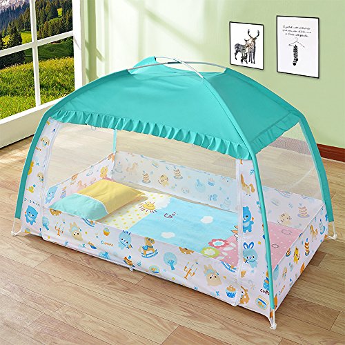 ベビー蚊帳 子供用ワンタッチ蚊帳 テント式モスキートネット 折りたたみ ムカデや蚊 対策 虫よけ エアコン冷風よけ 簡単設置 簡単収納 (120*65*90cm 1ドアタイプ)