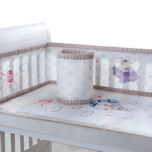 ベビーベッドガード サイドガード ベビーベッドバンパー 4シーズン使用可能 通気性 四方タイプ 取り付け便利 ベビーベッドフェンス (ブラウン)