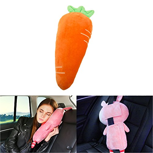 Sunsangシートベルト枕 、カーシートベルトカバー、キッズ 子供 ぬいぐるみおもちゃシートベルトストラップカバー、自動調節可能、子ともの頭、肩、胸を保護 (ニンジン)