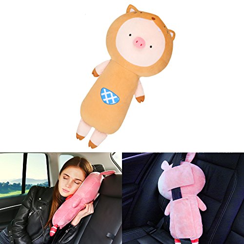 Sunsangシートベルト枕 、カーシートベルトカバー、キッズ 子供 ぬいぐるみおもちゃシートベルトストラップカバー、自動調節可能、子ともの頭、肩、胸を保護 (pig)